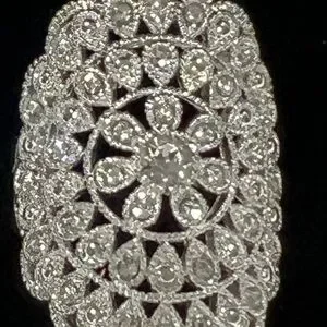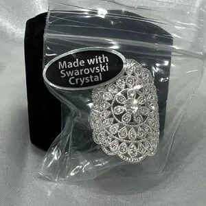 Dazzling Swarovski ring with intricate crystal silver design. Perfect for adding sparkle.