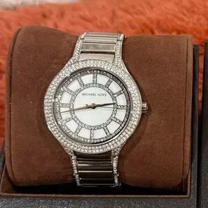Every girl deserves a little glitz and glamour eye-catching Kerry watch. It dazzles wow's and looks fit for rigorous use without losing its shine! The purity in its design comes from its high-end construction and makes for the perfect gift to a fashion-conscious girl who loves jewelry but can’t wear them in the day to day life. It comes with a stainless steel case with a stainless steel bracelet. Fixed silver-tone bezel set with crystals. Mother of pearl crystal-set dial with silver-tone hands and with diamond-embellished hour indexes which have been created for that extra wow factor.