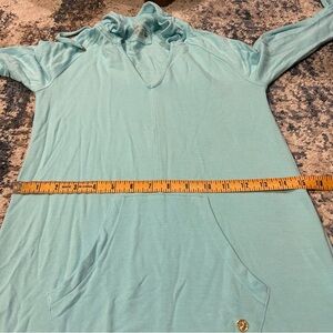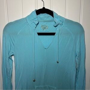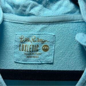Lilly Pulitzer Luxletic Blue Ibiza Cassi Popover Sweater. Has a front pocket. As shown in photos above. There is pilling throughout the front and back. In otherwise great preowned condition. Feel free to make a reasonable offer through the offer button.