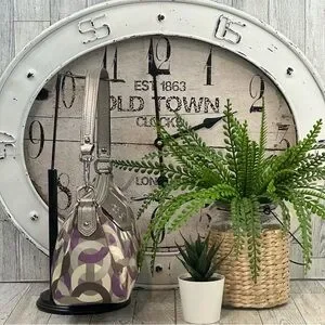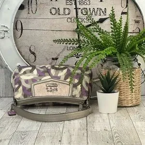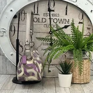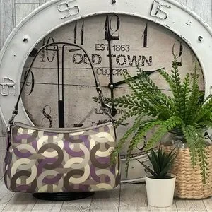 COACH - Mini Madison Op Art Shoulder Handbag Purple Silver Cream & Gray