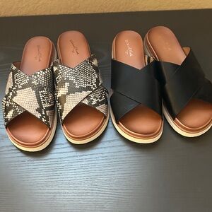 TWO Pairs Universal Thread Black and Snake Print Sandals, New without tag