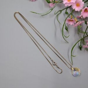 This elegant silver necklace features a stunning iridescent pendant, perfect for adding a touch of sophistication to any outfit. Ideal for both casual and formal occasions.