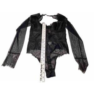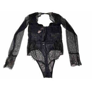 Victoria Secret Black Lingerie One Piece Long Sleeve Body Suit Lace 34b / 170