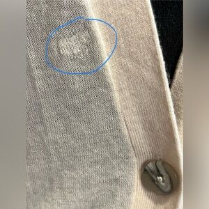 Minor flaw on front and on cuff small hole.