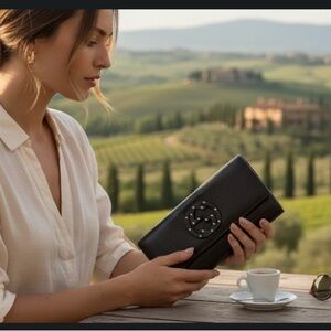GUCCI Full Inclusion Brown Interlocking GG Studded Leather Long Wallet EUC