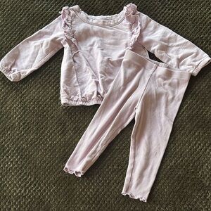 • Carter’s 18 month lavender terry cloth sweatshirt with ruffle shoulders and matching lettuce trim leggings