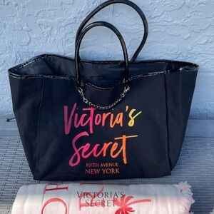 Victoria's Secret Black and Pink Tote with Towel