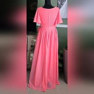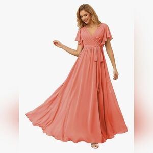 Raseal Flutter Sleeve Chiffon Bridesmaid Dress with Pockets In CORAL #1013