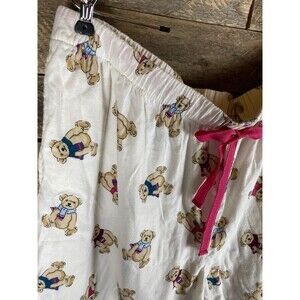 Joyspun Women's Plus Sz 2X Pajama Pants White Bear Print Drawstring Waist