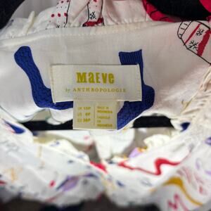 Anthropologie Maeve Marisol Ruffled Blouse 6P Ski Print Button Front snow