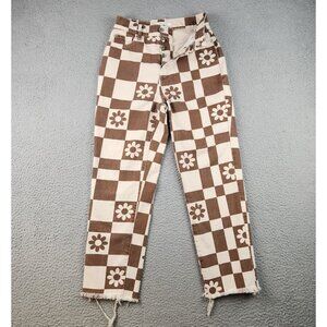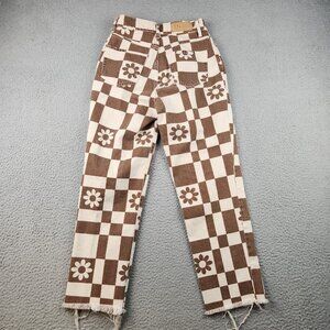 Pacsun Jeans Womens 25 High Rise Straight Leg Eco Flower Plaid Button Fly Frayed