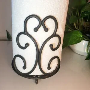 Overall, the Paper Towel Holder is in good condition but has a few areas that appear to have collected a little bit of rust. It's not really noticeable especially when there is a roll of paper towels on it. A light sanding may possibly remove it or possibly give it a coat of Rust-Oleum spray paint. Please view up-close photos to see what I'm talking about.