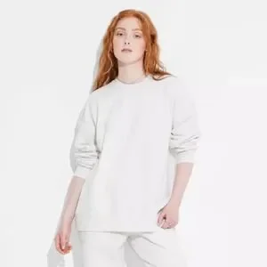 The Women's Oversized Pullover Sweatshirt from Wild Fable in heather gray, size M (New With Tags), features a soft heavyweight cotton-poly fleece blend for warmth and comfort. Designed with an oversized fit, crew neckline, long sleeves with ribbed cuffs, and a below-waist ribbed hem, it's perfect for layering or casual outfits. Easy pullover style and machine-wash care make it ideal for everyday wear. Keywords: Wild Fable sweatshirt M, oversized gray pullover, heavyweight fleece top, women's cozy sweatshirt, casual crewneck sweater, NWT.