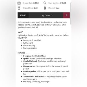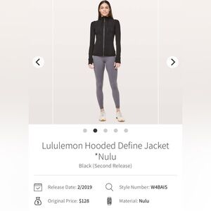 Lululemon Define Hooded Full Zip Jacket Nulu in Black Size 6