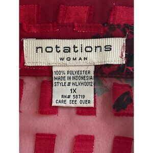 Notations Womens 1X Red & Black Sheer Shimmery Floral Long Sleeve Button Up Top