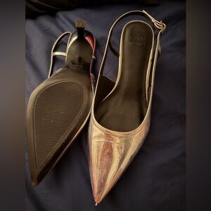 Aldo silver slingback kitten heels pointy toe low heel adjustable party 9