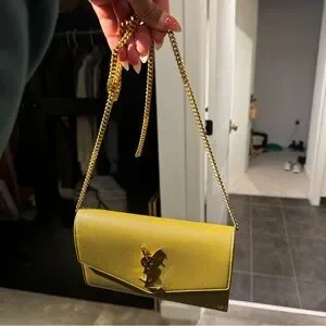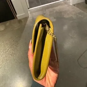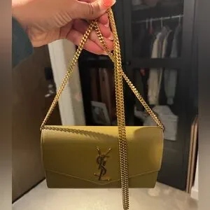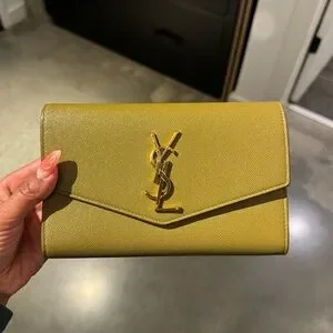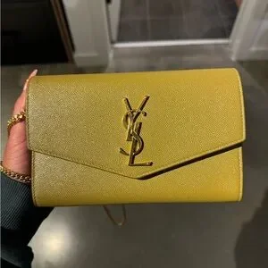 Relist - YSL CHARTREUSE UPTOWN CHAIN WALLET IN GRAIN DE POUDRE EMBOSSED LEATHER