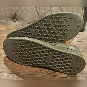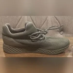 Experience comfort and style with these olive knit sneakers. Featuring a textured sole, they provide excellent grip and a snug fit for everyday wear.