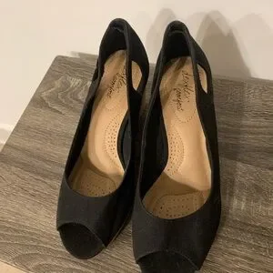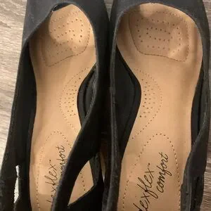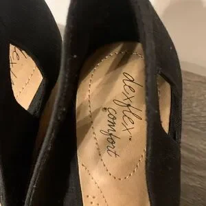 Deflex Confort Elegant Black Wedge Shoes with Cork Heel Size 7