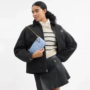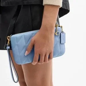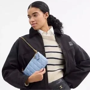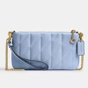 Coach Pouch Bag with Pillow Quilting in Brass/Bluebell Nappa Leather NWT