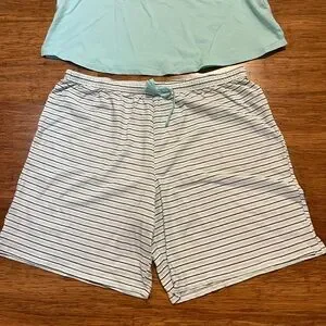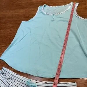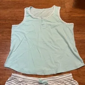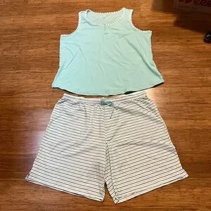Like New. Carole Hochman Aqua Blue Tank & Blue White Striped Shorts Pajama Set. Size Women's Extra Large XL