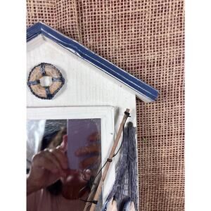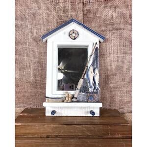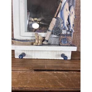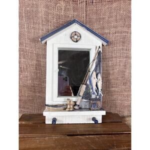 Wood Nautical “Gone Fishing” Theme Mirror with 2 Hanger Shelf~Bathroom Decor