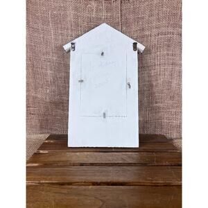 Can also be used for photos . Back opens up to take mirror out if needed ( see photo). Perfect decor for a cabin , a bathroom to hang towels or hang fun fishing items from the pegs ( nets, fishing hooks, lures and fishing hat) Great condition back has bern painted with a fresh coat of white paint .