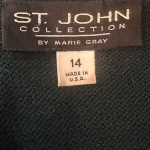 St. John Collection Green Blazer with Logo Buttons Leather Trim