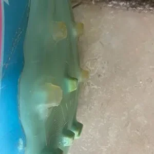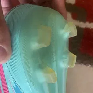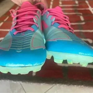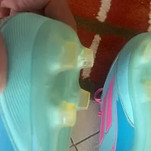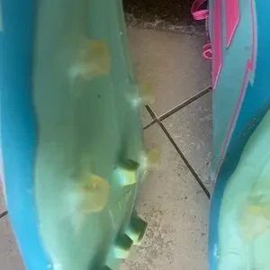 Purchased new, worn for two months. Cleaned inside and out with soap, water, sponge, brush and anti microbial heater applied inside the shoe.