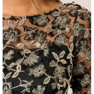 Adrianna Papell Black Gold Metallic Embroidered Sheath Dress 4
