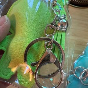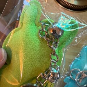 Adorable crystal encrusted puffy Labubu purse charm/keychain, Blue & Green