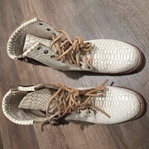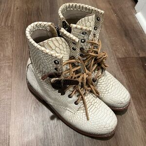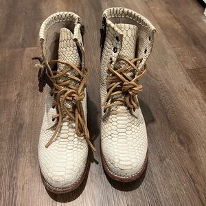 Step out in style with these chic cream textured boots. Perfect for adding a touch of elegance to any outfit.