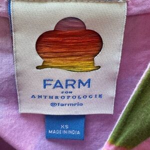 Beautiful and vibrant Farm Rio cropped top featuring a bold tropical print and colorful beaded straps. Size XS. The decorative fabric “ball” straps have a bit of unraveling (as shown in photos), but it’s hardly noticeable when worn and doesn’t affect the look or wear. Priced accordingly. Otherwise excellent condition!