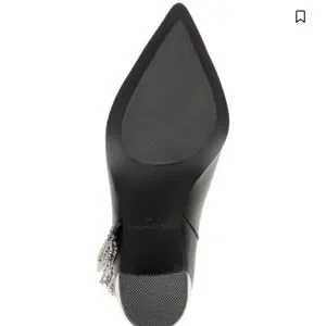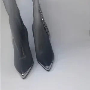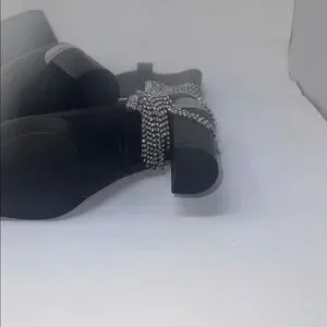 NEW DANIEL DIAMOND Elegant Black Heeled Boots with Silver Chain Detail