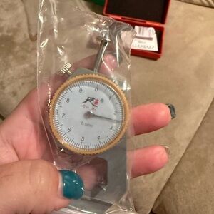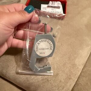 Brand new thickness gauge. A thickness gauge is a tool used to measure the thickness of a material, often for quality control or to ensure compliance with standards. Can measure leather, metal, plastic or coatings.