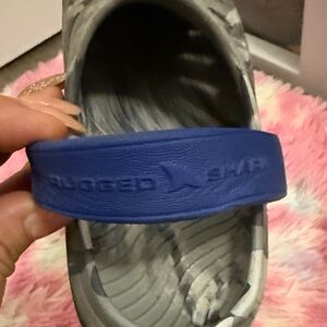 These kids' water shoes combine a sleek gray design with bold blue accents, offering both style and functionality for water adventures.