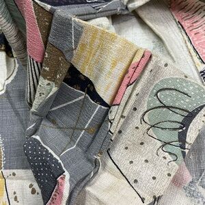 Vintage mid century spectrum atomic lightweight bark cloth curtains set of two. Stunning! Each panel is 21 inches wide at the top, 41 inches wide midway and 68 inches in total length. No rips or tears. Rare vintage find. Both panels stay together. Smoke and pet free home. 🇺🇸
