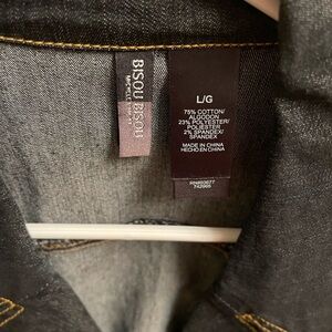 Elegant black denim jacket with stylish stitching. Ideal for any occasion.
