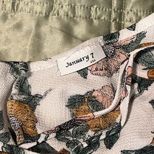 The cutest little crop, featuring an off the shoulder with spaghetti strap look and detailed V neck with a tie at the waist.