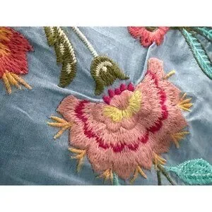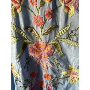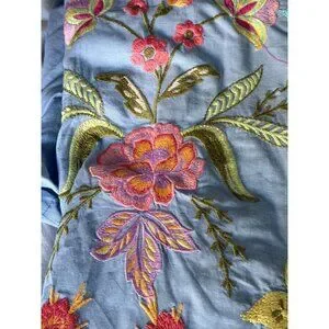 • Sky blue with multicolor floral embroidery