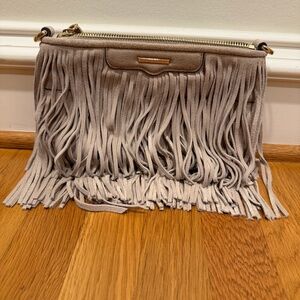 Barely used Rebecca Minkoff taupe suede fringe bag. In excellent condition. Removable shoulder strap. Bag can be used as crossbody or clutch.