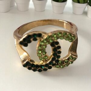 Elegant gold ring adorned with sparkling green crystals. Perfect for adding a touch of glamour to any outfit.