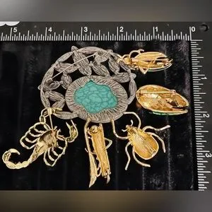 Lot of 6 Insect Brooches – Beetle, Scorpion, Grasshopper, Cicada, Turquoise