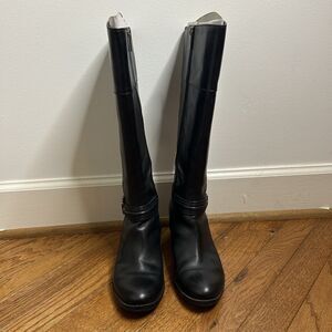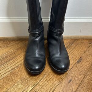 Bandolino Womens Size 8M Black Leather Zip Buckle Knee High Fashion Boots