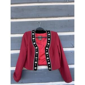 Double D Ranch, Western jacket, concho jacket, studded jacket, rodeo jacket, Southwestern style, cowgirl blazer, vintage, velvet trim jacket, red cropped jacket