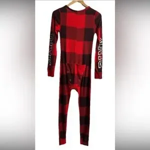 Victoria's Secret PINK Red Buffalo Plaid Holiday Union Suit Pajama Sequin Sz XS