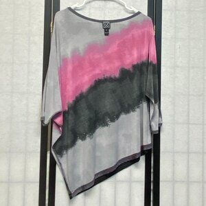 Clara Sun Woo Ombre ¾ Dolman Sleeve Boat Neck Asymmetrical Top Pink Grey Black M