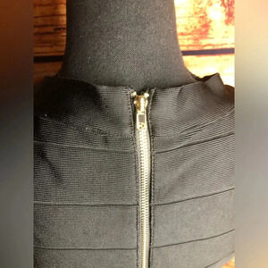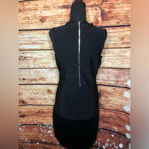 Look red carpet ready as soon as you slip into this flattering bandage mini dress! The banded style fits to your figure with the help of Hold U In fabric for curve appeal. The V-neck and sleeveless, back-zip bodice show off your sexy side while the fringe hem moves with you as you hit the dance floor.