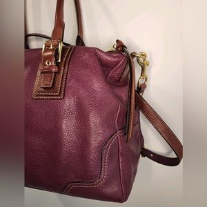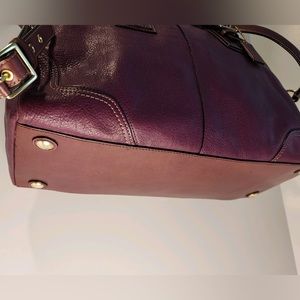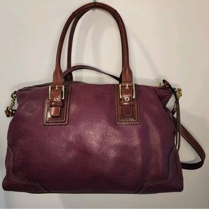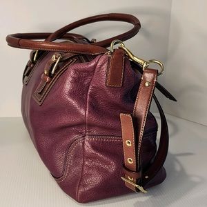 Coach Genuine Pebbled Leather Berry w/Camel Accents Hampton Satchel Bag