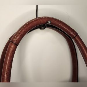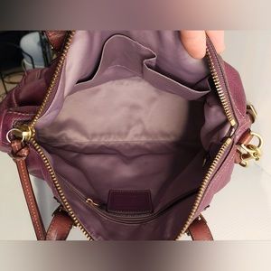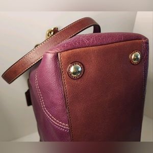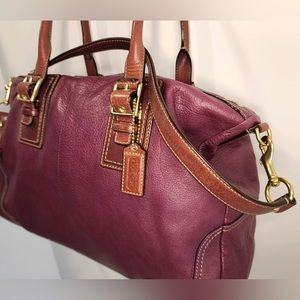 Authentic Coach Pre-owned Genuine Soft Pebbled Leather bag, Berry w/Top Grain Burnished Glove Tanned Leather in Beautiful Camel color combo & Antique Gold Hardware.